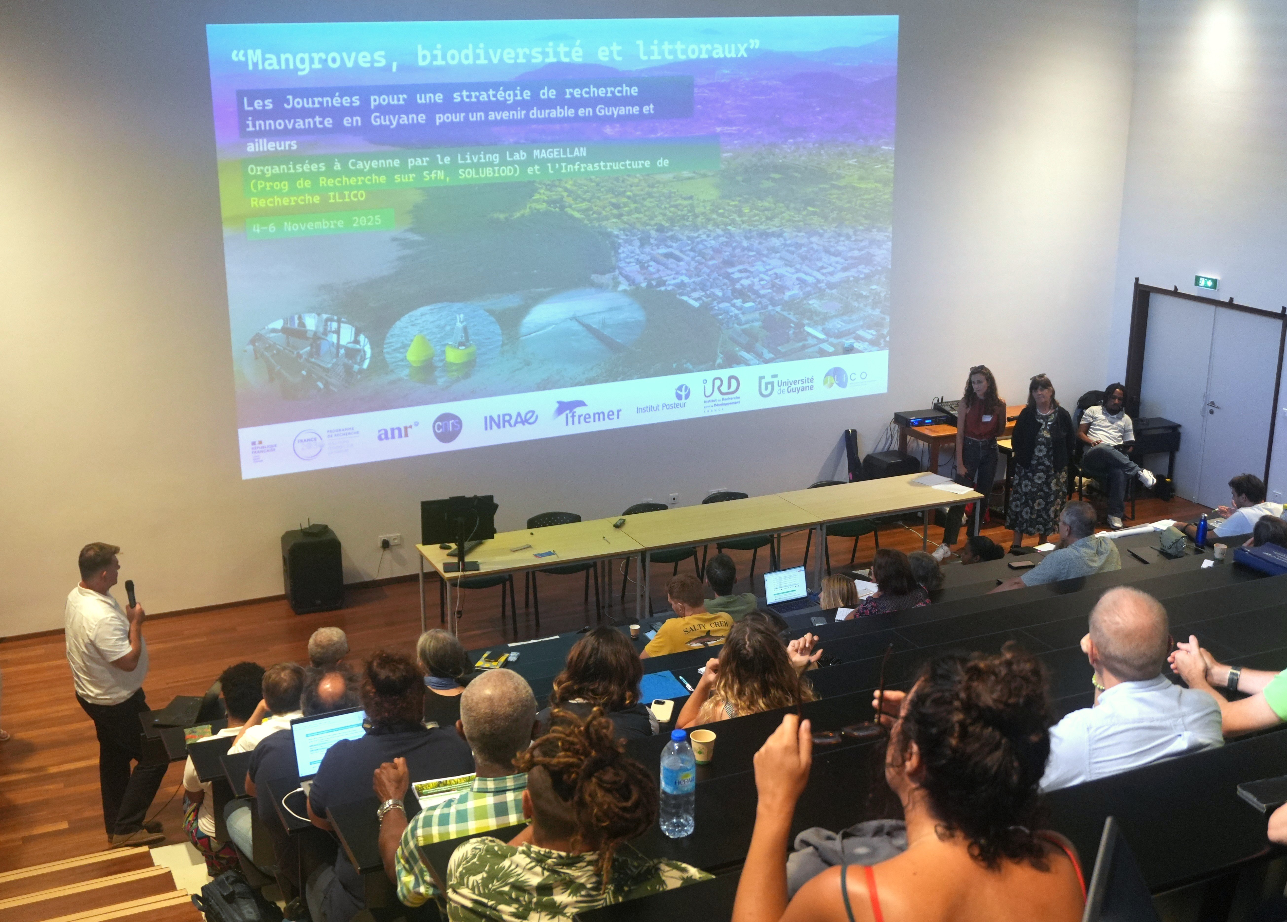 Elodie Blanchard, Research Engineer (IRD) from the MangMap team, took part in three days of events organised by the MAGELLAN Living Lab and the ILICO network from 4 to 6 November in Cayenne, dedicated to scientific innovation in mangroves and the Guiana coastline. This event was hosted by the University of Guiana (4 November) and IRD Guiana (5 and 6 November).