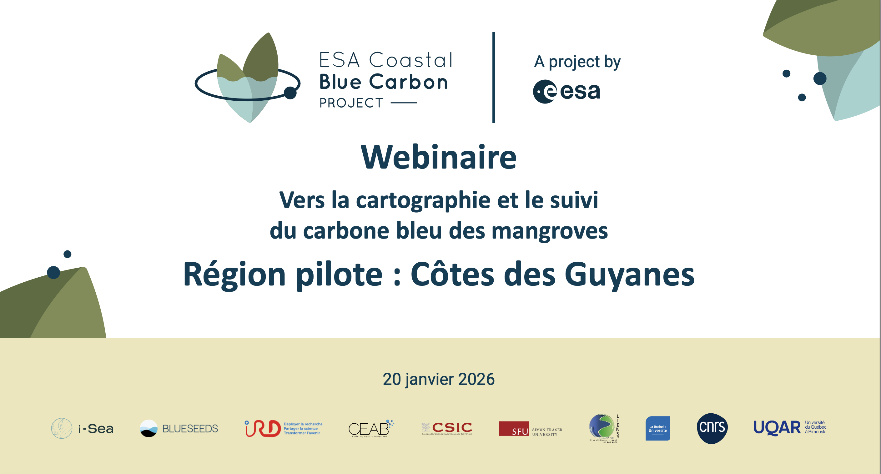Webinaire du 20 janvier : Suivi des mangroves et de leur stock de carbone bleu sur le plateau des Guyanes